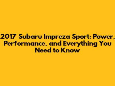 2017 Subaru Impreza Sport: Power, Performance, and Everything You Need to Know