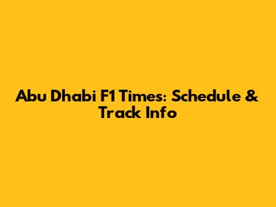 Abu Dhabi F1 Times: Schedule & Track Info