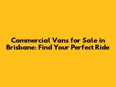 Commercial Vans For Sale In Brisbane: Find Your Perfect Ride