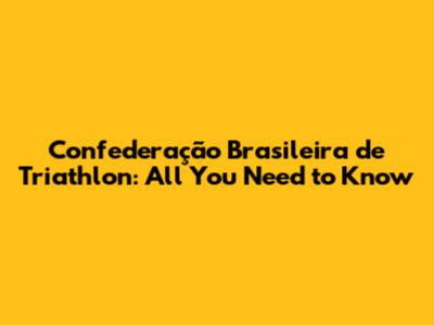 Confederação Brasileira De Triathlon: All You Need To Know