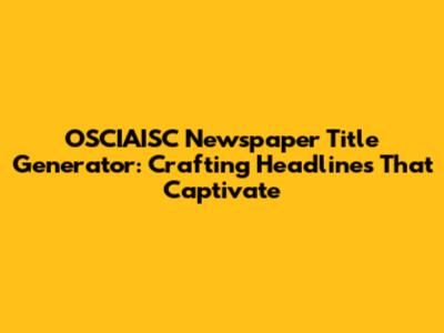In conclusion, the OSCIAISC Newspaper Title Generator is a valuable tool for anyone looking to create compelling headlines that grab attention, inform readers, and drive engagement. By understanding the power of a great headline, utilizing the key features of a title generator, and following the step-by-step guide outlined in this article, you can craft headlines that not only attract readers but also maximize SEO and increase the visibility of your content. And with the future of headline generation looking brighter than ever thanks to advancements in AI, there's never been a better time to master the art of headline writing. So go forth, experiment, and create headlines that make a lasting impact!