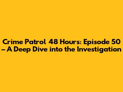 Hey guys! Ever found yourselves glued to the TV, completely engrossed in a suspenseful crime drama? If you're anything like me, then you're probably a fan of Crime Patrol 48 Hours. Specifically, we're diving deep into episode 50, a gripping tale that showcases the show's knack for recreating true crime stories with a heavy dose of drama and suspense. This isn't just a recap; we're going to dissect the episode, analyze the investigation techniques, and explore the real-life crimes that inspired it. So, grab your popcorn, and let's unravel the mysteries together!