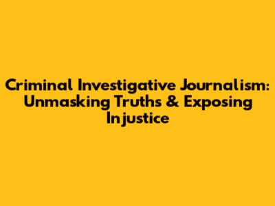Criminal Investigative Journalism: Unmasking Truths & Exposing Injustice