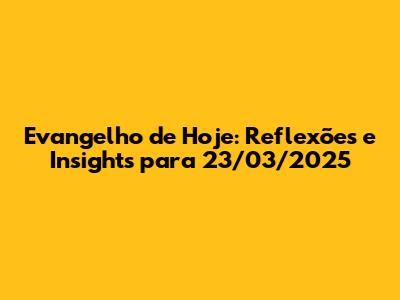 Evangelho De Hoje: Reflexões E Insights Para 23/03/2025