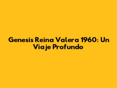 Genesis Reina Valera 1960: Un Viaje Profundo