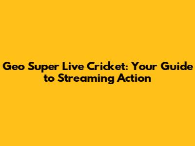 Geo Super Live Cricket: Your Guide To Streaming Action