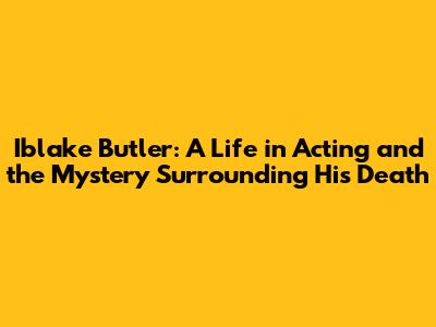 Iblake Butler: The Actor's Life And Unexpected End