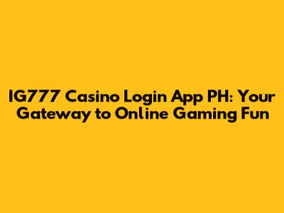 IG777 Casino Login App PH
