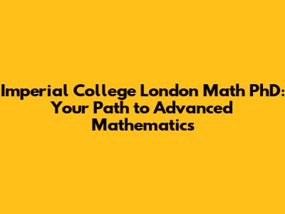 Imperial College London Math PhD: A Comprehensive Guide