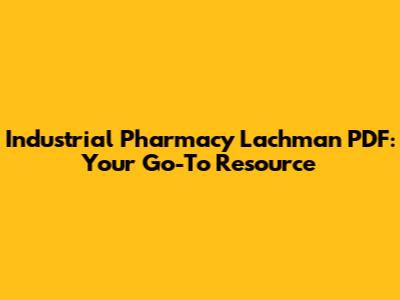 Industrial Pharmacy Lachman PDF: Your Go-To Resource