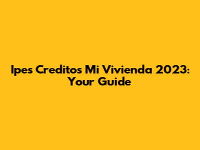Ipes Creditos Mi Vivienda 2023: Your Guide