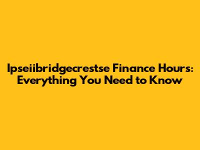 Ipseiibridgecrestse Finance Hours: Your Complete Guide
