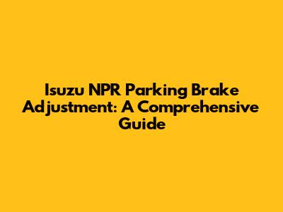 Isuzu NPR Parking Brake Adjustment: A Step-by-Step Guide