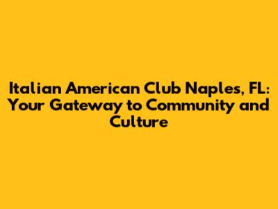 Hey guys! Ever wondered where you can find a slice of Italy right here in Naples, Florida? Look no further than the Italian American Club of Naples, FL. This isn't just a club; it's a vibrant community hub where Italian culture thrives, friendships blossom, and memories are made. Let's dive into what makes this club so special and why it might just become your new home away from home.