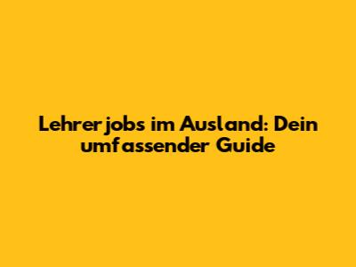 Lehrerjobs Im Ausland: Dein Umfassender Guide