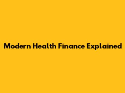 Modern Health Finance Explained