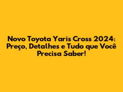 Ao longo deste artigo, vamos explorar cada aspecto do Yaris Cross 2024, desde o seu design exterior e interior até os detalhes técnicos, como motor, câmbio e consumo. Vamos analisar as versões disponíveis, os preços esperados e os principais equipamentos que o carro oferece. Se você está pensando em comprar um carro novo ou simplesmente curioso sobre as novidades do mercado automotivo, este artigo é para você. Prepare-se para descobrir tudo sobre o Toyota Yaris Cross 2024 e entender por que ele pode ser a escolha perfeita para você. Vamos nessa?