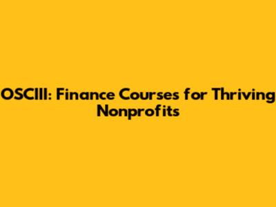 OSCIII: Finance Courses For Thriving Nonprofits