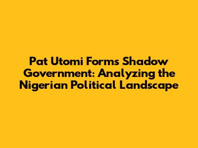 Hey guys! Let's dive into something super interesting happening in Nigerian politics – the formation of a shadow government by none other than the renowned Pat Utomi. Now, for those of you who might be scratching your heads, a shadow government is basically a group of people who act as an alternative government. They often criticize the current government and propose their own policies, kinda like a parallel universe of governance. It’s a bold move, and it's got everyone talking, so let's unpack this and see what it all means for Nigeria. We'll explore why Utomi would take this step, what it entails, and how it could shake up the political scene. Buckle up, because this is going to be a fascinating ride!