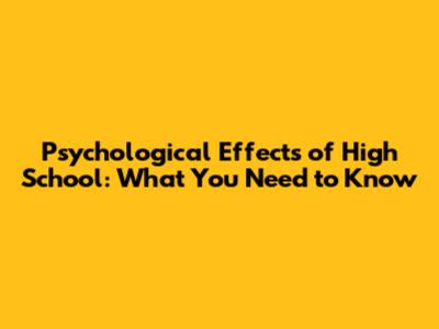 Psychological Effects Of High School: What You Need To Know
