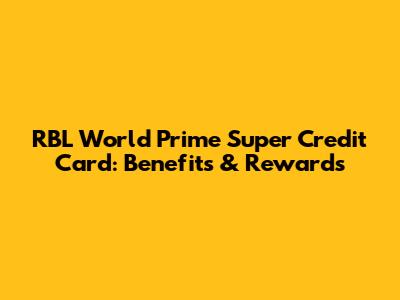 RBL World Prime Super Credit Card: Benefits & Rewards
