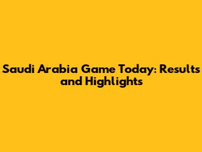 Saudi Arabia Game Today: Results And Highlights