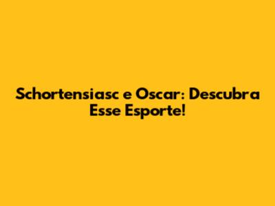 Schortensiasc E Oscar: Descubra Esse Esporte!