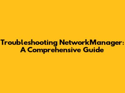 Troubleshooting NetworkManager: A Comprehensive Guide