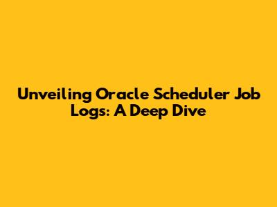 Unveiling Oracle Scheduler Job Logs: A Deep Dive