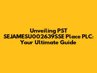 Unveiling PST SEJAMESU002639SSE Place PLC: Your Ultimate Guide